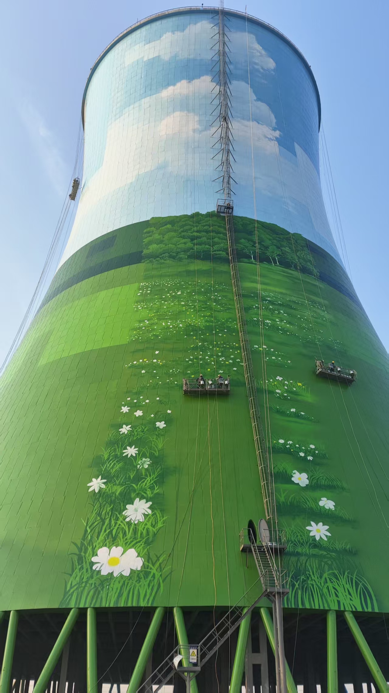 冷卻塔彩繪專(zhuān)家宏順建設(shè)完成高80米的巨型雙曲線塔身化作立體畫(huà)布